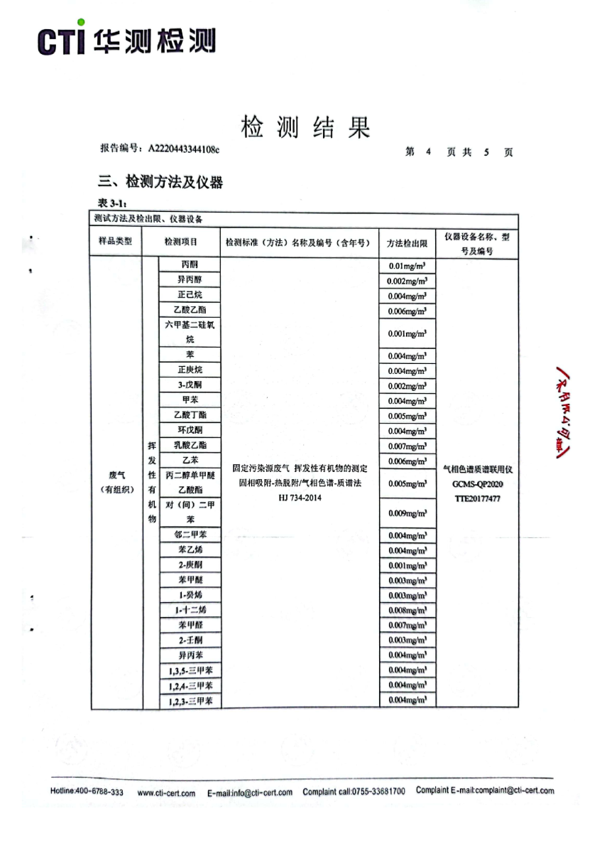 2022年第四季度,公司按照国家企业安全生产标准,对公司所排出的污染源,委托第三方进行抽样检测,详细的检测报告如下
