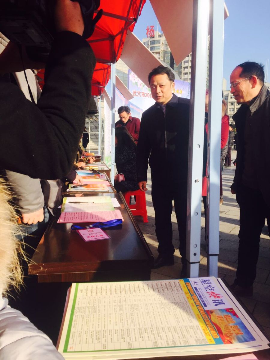 2月15日(农历正月初八),武穴市2016年“春风行动”大型招聘会在体育广场隆重开幕。武穴市委副书记、代市长李新桥,市委常委、常务副市长向博等领导均出席了本次招聘会。本次招聘会为期3天,吸引了来自武穴及周边的成千上万名求职者前来参与咨询。