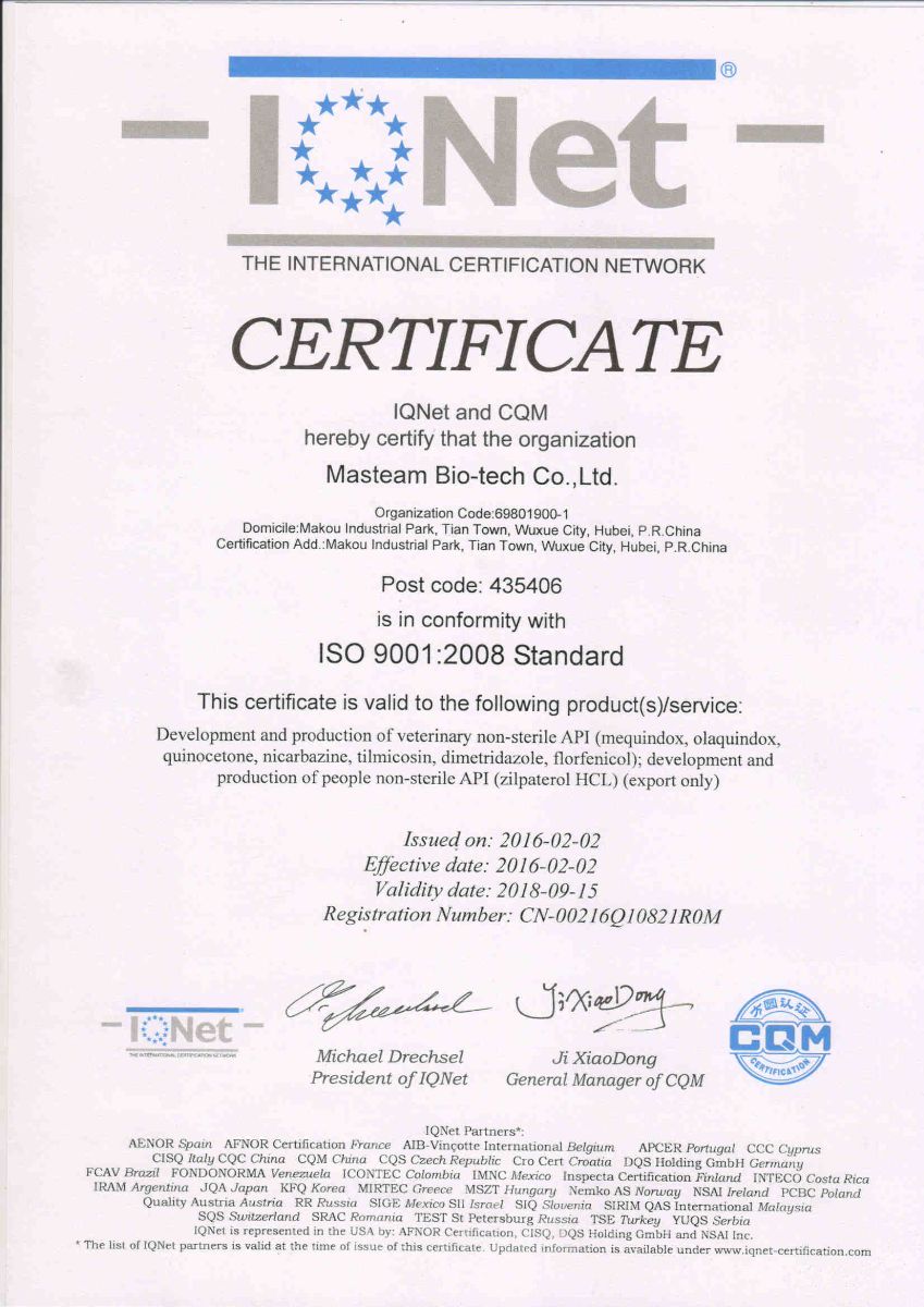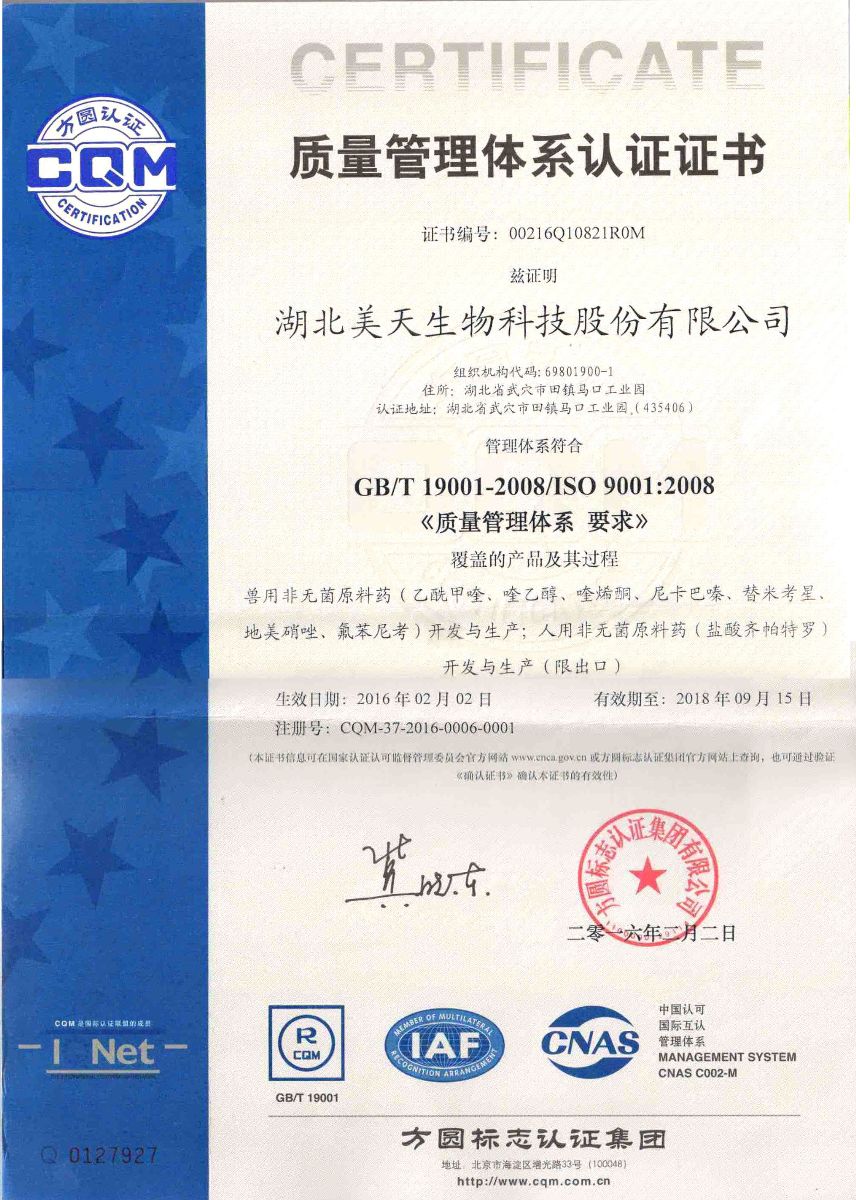 2016年2月2日,中欧手机版app成功获得质量管理体系认证证书(GB/T 19001-2008/ISO 9001:2008)。